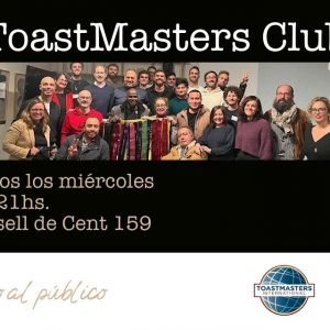 Formaciones de Oratoria por ToastMasters Club Bcn Desarrolla habilidades de comunicación y liderazgo en un entorno profesional ... 29 Abr 19:15 - 21:00 Loft 153 x Mobler - Offices & EventsCarrer del Consell de Cent, 159, L'Eixample, 08015 Barcelona
